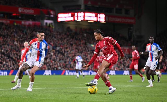 门将伍德曼是从英冠普雷斯顿挖来的,背景还是水晶宫学徒,非常讽刺。后防是两个边卫加一名防守中场的大杂烩。你等等,怎么只有3个人?啊,斯洛特还变阵来着。不知道是因为人手不够,还是因为被格拉斯纳的三后卫打怕,他也依葫芦画瓢,摆了个三中卫。但远藤航、罗伯逊和乔·戈麦斯,哪一个你觉得够个儿对抗马特塔?甚至,水晶宫首发的中锋恩凯蒂亚,也让这条后防非常狼狈。